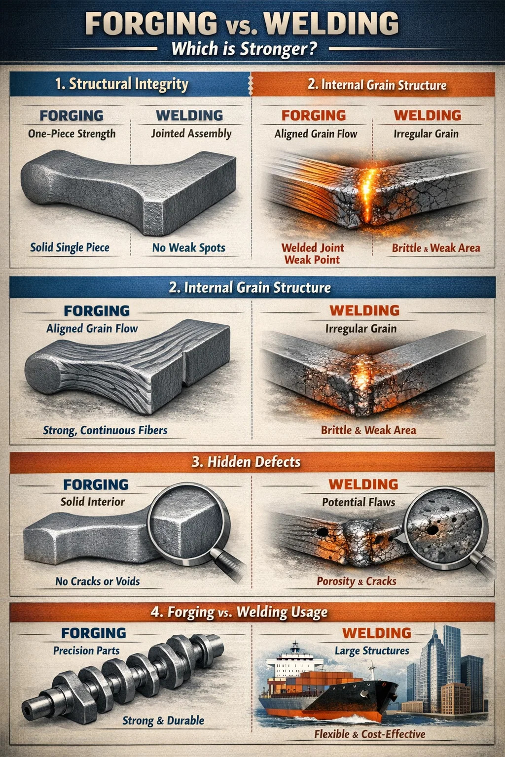 Đây là một câu hỏi rất cổ điển. Câu trả lời đơn giản và trực tiếp là: trong hầu hết các ứng dụng quan trọng và có ứng suất cao, rèn thực sự mạnh hơn và đáng tin cậy hơn hàn.