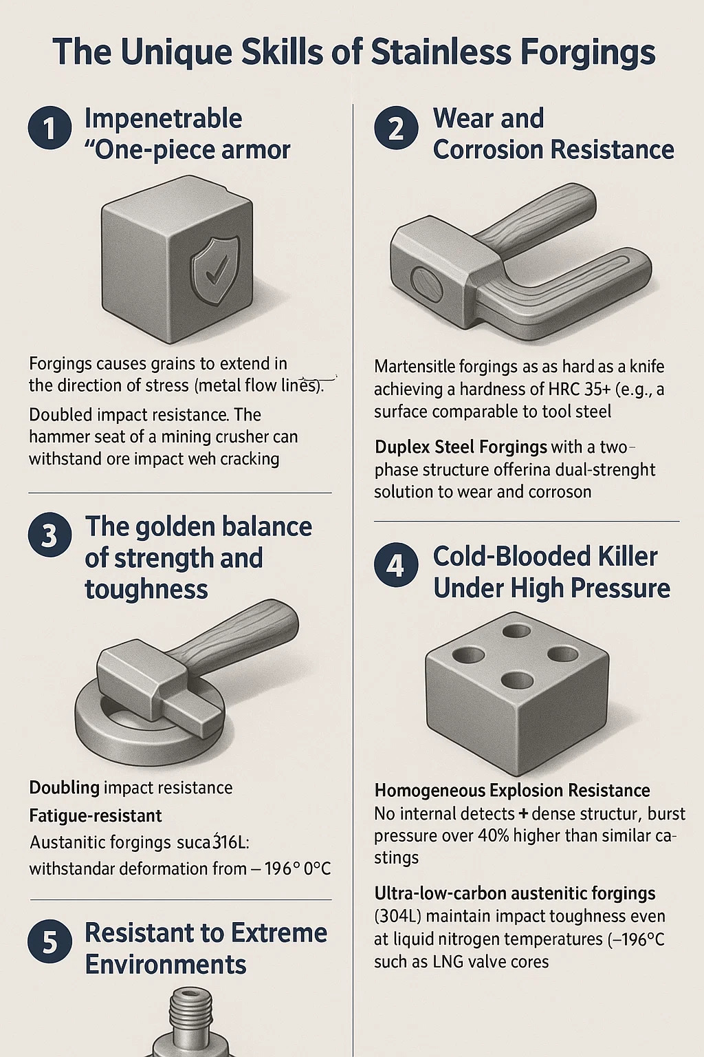 Cả độ cứng và tính linh hoạt: Vật liệu rèn Austenitic (chẳng hạn như 316L) cực kỳ bền bỉ, chịu được biến dạng từ -196°C đến 800°C.