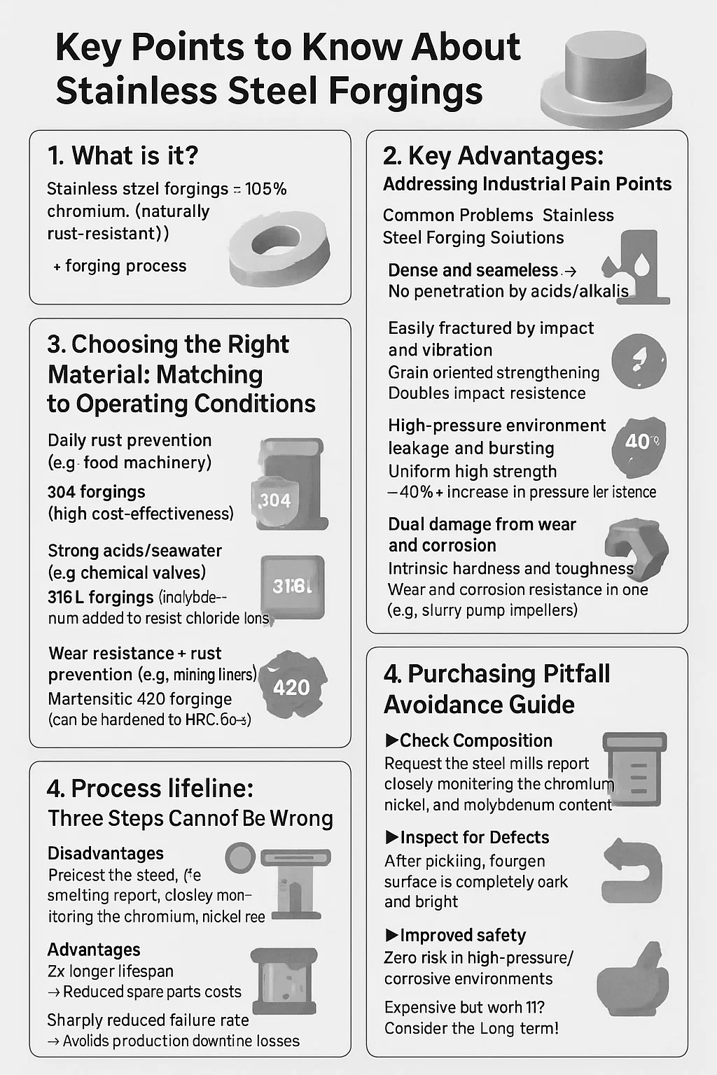 Vật rèn bằng thép không gỉ = Quá trình rèn bằng thép không gỉ (chứa ≥10,5% crom, chống gỉ tự nhiên) (đập búa ở nhiệt độ cao).